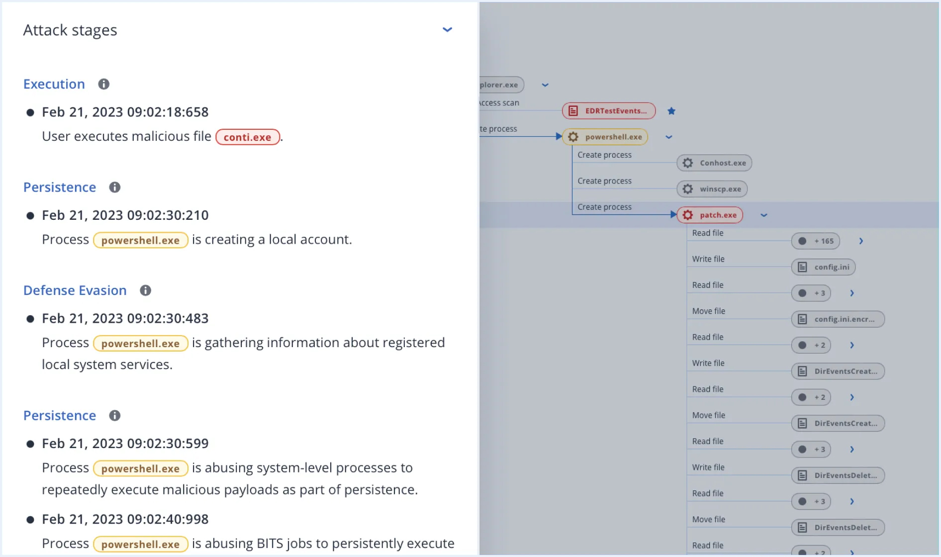 View a qualified list of possible problems, based on a prioritized analysis, instead of a flat list of suspicious behaviors. Receive a complete step-by-step analysis that will help you comprehensively understand the attack surface.