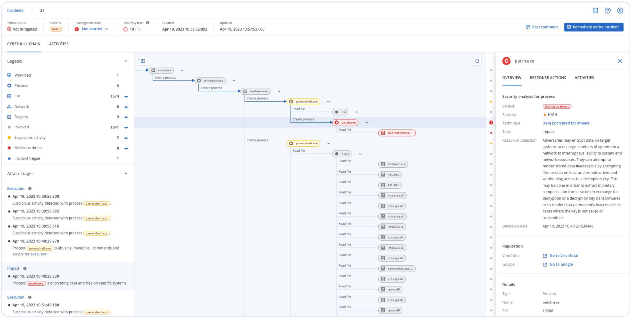 The EDR service allows analysts to monitor all effects of the alleged threat by aggregating information that normally requires many different tools to collect and cross-reference, presenting it in a useful unified interface so that it is easier to analyze.